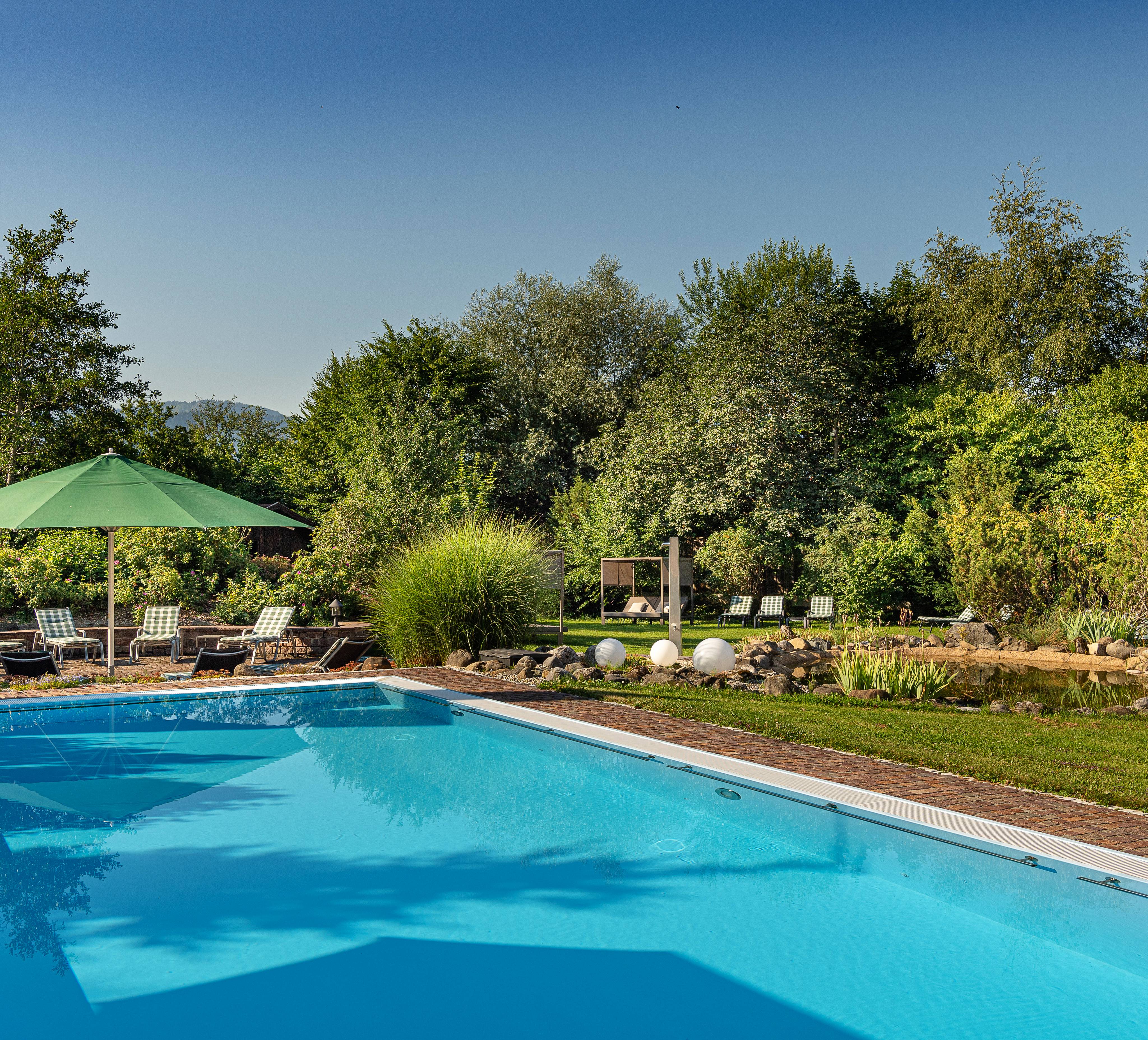 Erleben Sie puren Badespaß in frischem Bergquellwasser und erfahren Sie im Anschluss inspirierende Erholung für die Sinne in einer der idyllischen Ruheoasen an unserem liebevoll angelegten Schwimmteich. Hier finden Jung und Alt ihren Badespaß bei 25 x 17 Meter sowie Erholung für die Seele.